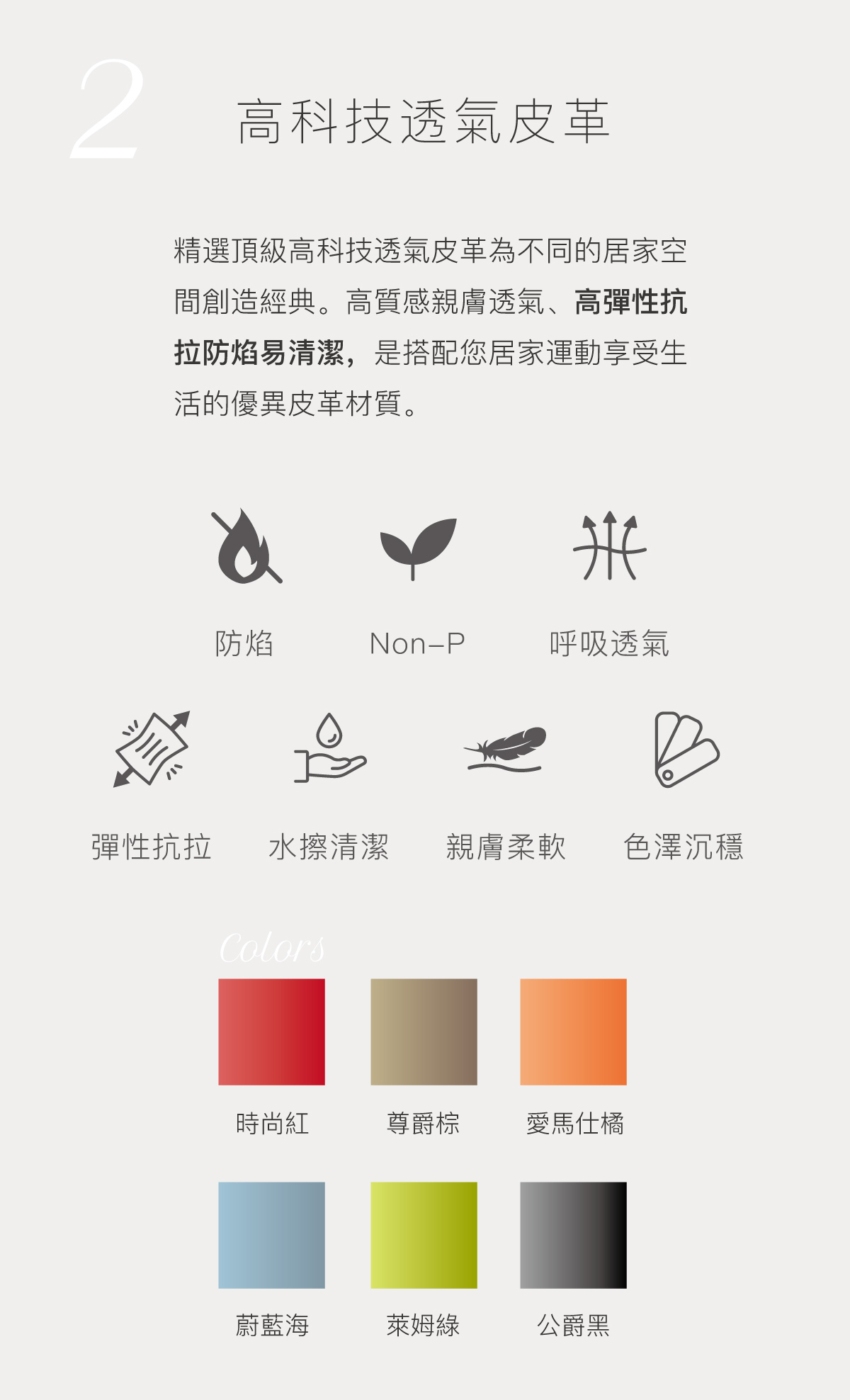 8種皮革色為不同的居家空間創造經典,自然和諧的色彩結合細膩工匠工藝技術讓您自由挑選,搭配您的生活方式,找到只屬於您的獨特品味。